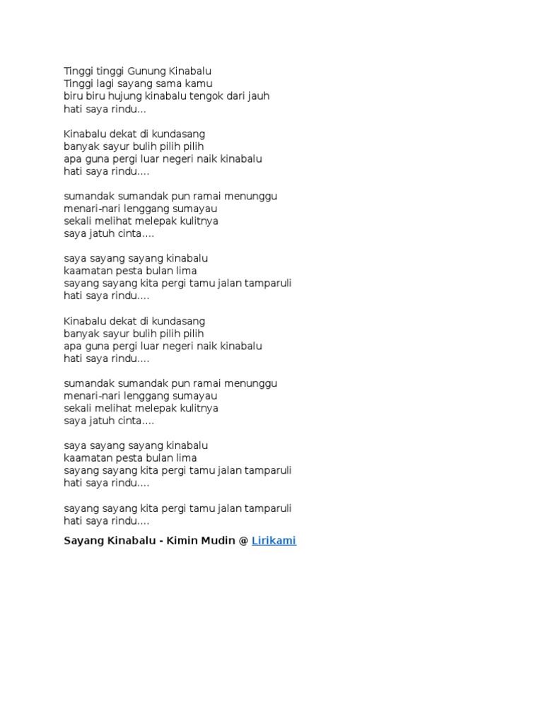 Lirik Lagu Original Sabahan from imgv2-1-f.scribdassets.com Download lagu mp3 & video: Mountain kinabalu is a mountain located at the west coast division of sabah, malaysia. Lagu gunung kinabalu lirik hd mp3 duration 3:24 size 7.78 mb / mr ezzal 13. Lagu gunung kinabalu lirik hd mp3. Lirik lagu mansau by adam shamil. Gunung kinabalu kundasang sabah reaction. Ada 20 gudang lagu gunung terbaru, klik salah satu untuk download lagu mudah dan cepat. Sudah kan saya bilang rindu juga kamu.