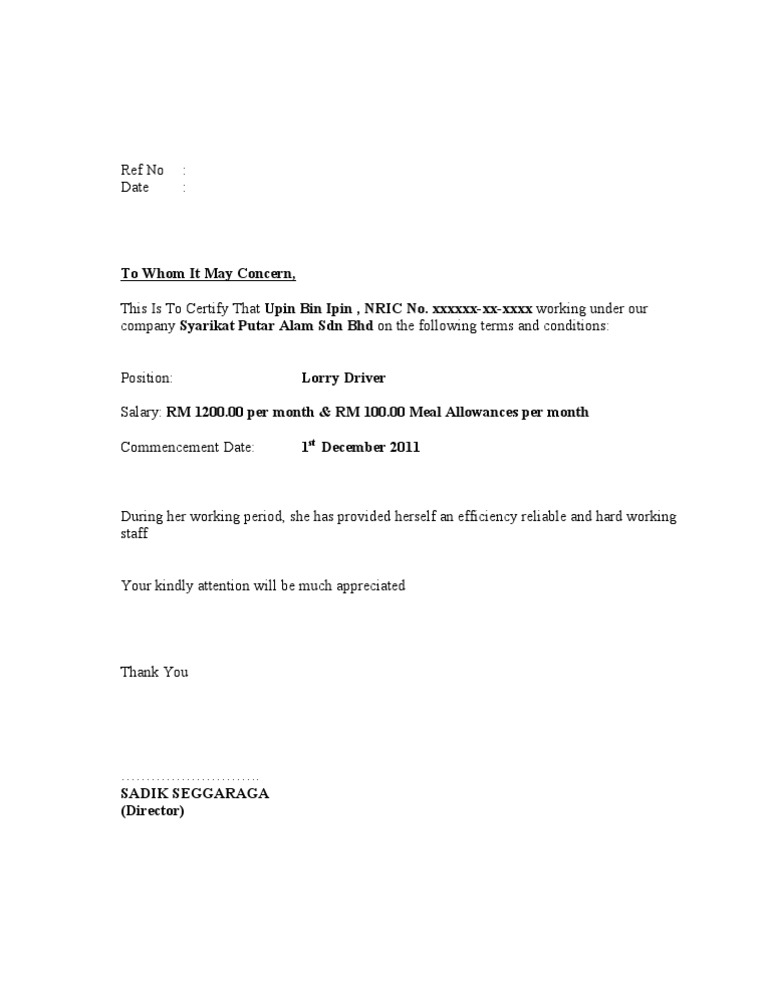 Contoh surat pengesahan majikan bahasa english.